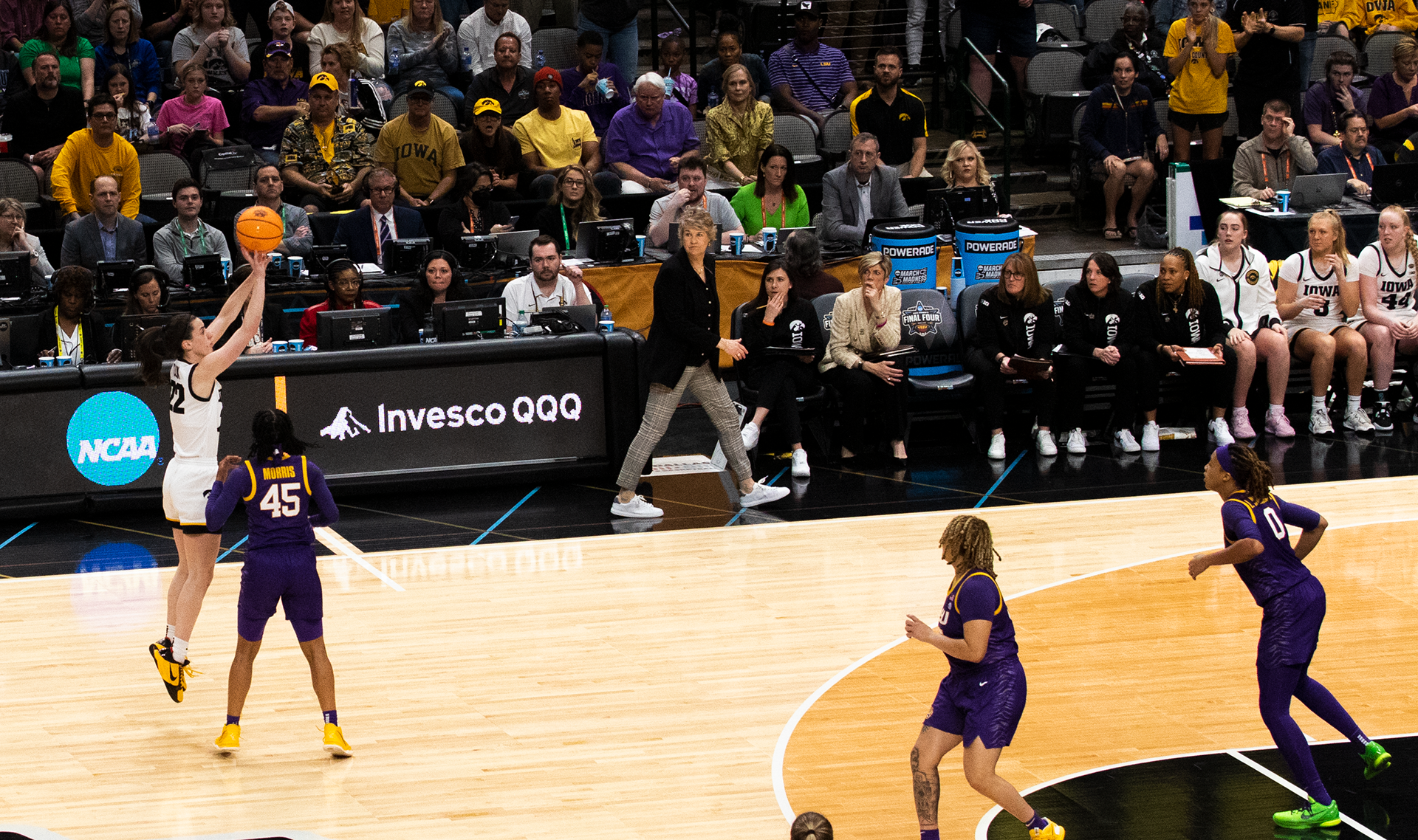 Kim Mulkey’s Louisiana State University's Tigers defeated the University of Iowa Hawkeyes for their first NCAA Tournament Title at the American Airlines Center in Dallas, Texas on Apr. 2, 2023. The matchup was the most watched Women’s College Basketball game ever with an average of 9.9M viewers.