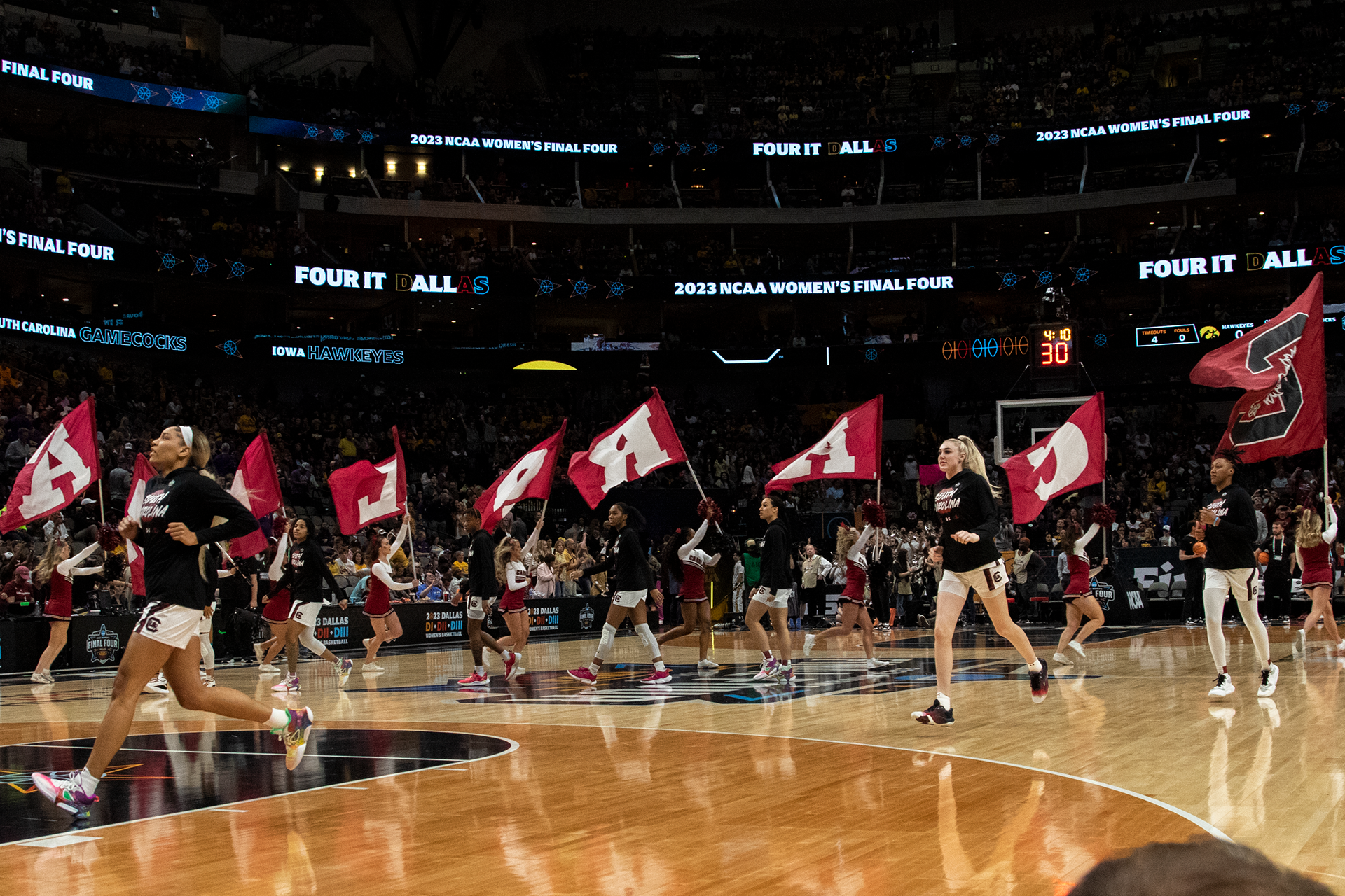 The Women's 2023 Final Four game at the American Airlines Center in Dallas, Texas, on March 31, 2023, featured a riveting clash between the University of South Carolina Gamecocks and the University of Iowa Hawkeyes. Iowa maintained the lead for most of the game, ultimately securing a 77-73 victory over the Gamecocks. This defeat marked the end of South Carolina's impressive 42-game winning streak.
